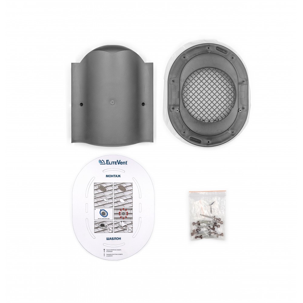 When used for attic ventilation, an aerator with an adapter is recommended. The set consists of a base (through-duct element), a cap, a template and a set of fasteners (self-tapping screws 3.5x19 mm, screws 4.8x55 mm).