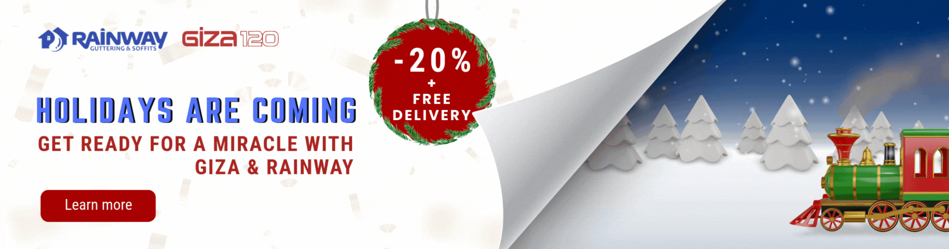 - 20% off Rainway and Giza gutters, soffits and gutter kits.