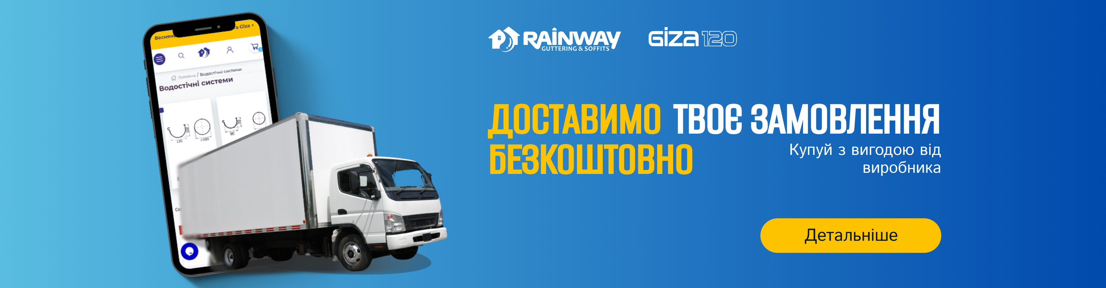 Купуй продукцію Rainway та Giza120 у період з 24.04 по 30.04 на суму від 7000 гривень та отримай безкоштовну доставку до відділення Нової Пошти, а від 8000 грн безкоштовну адресну доставку, а також: