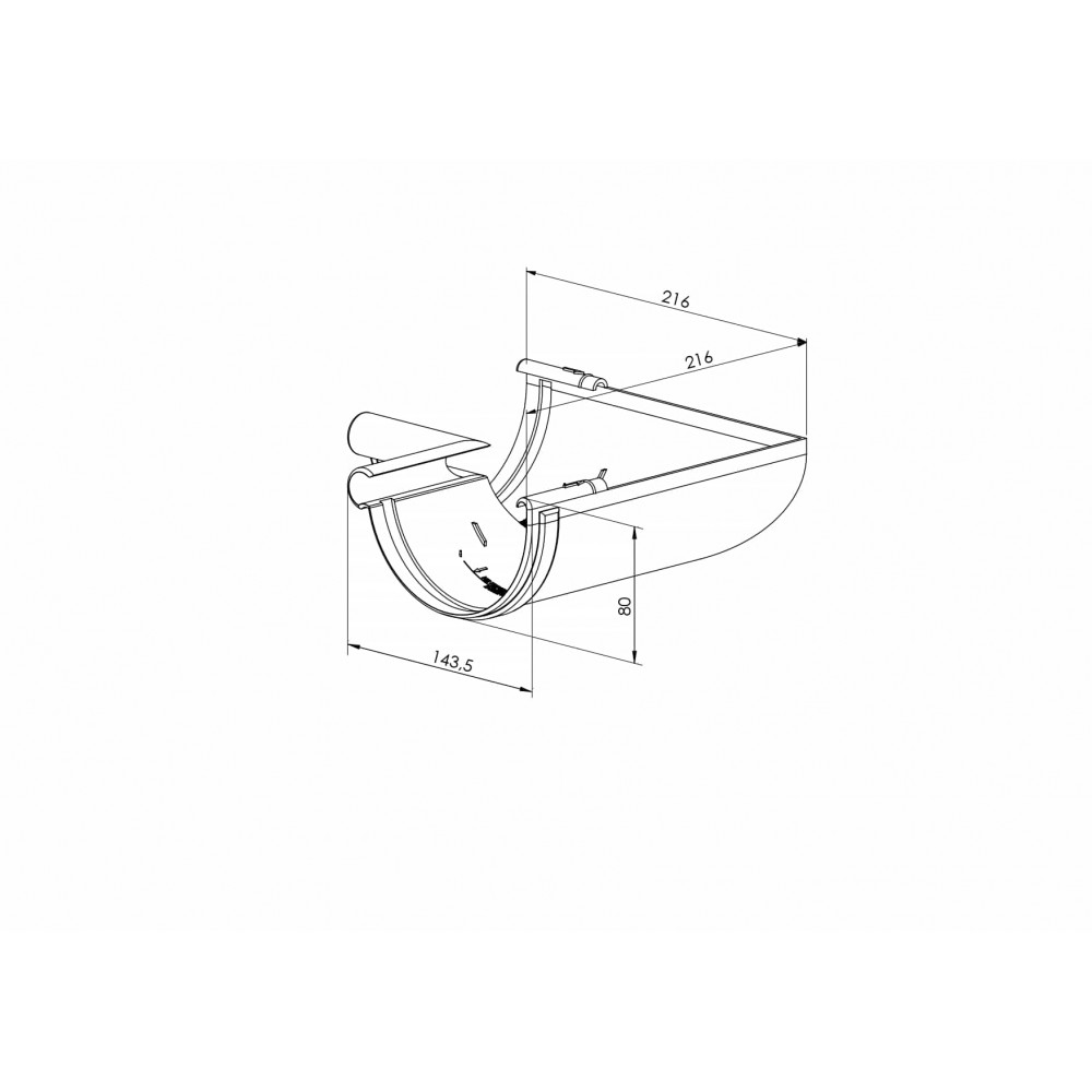 Устанавливается на внутренних углах кровли и предназначен для соединения желобов в углах здания под углом 90°, что позволяет адаптировать систему к форме крыши.